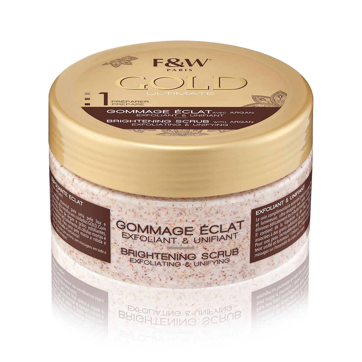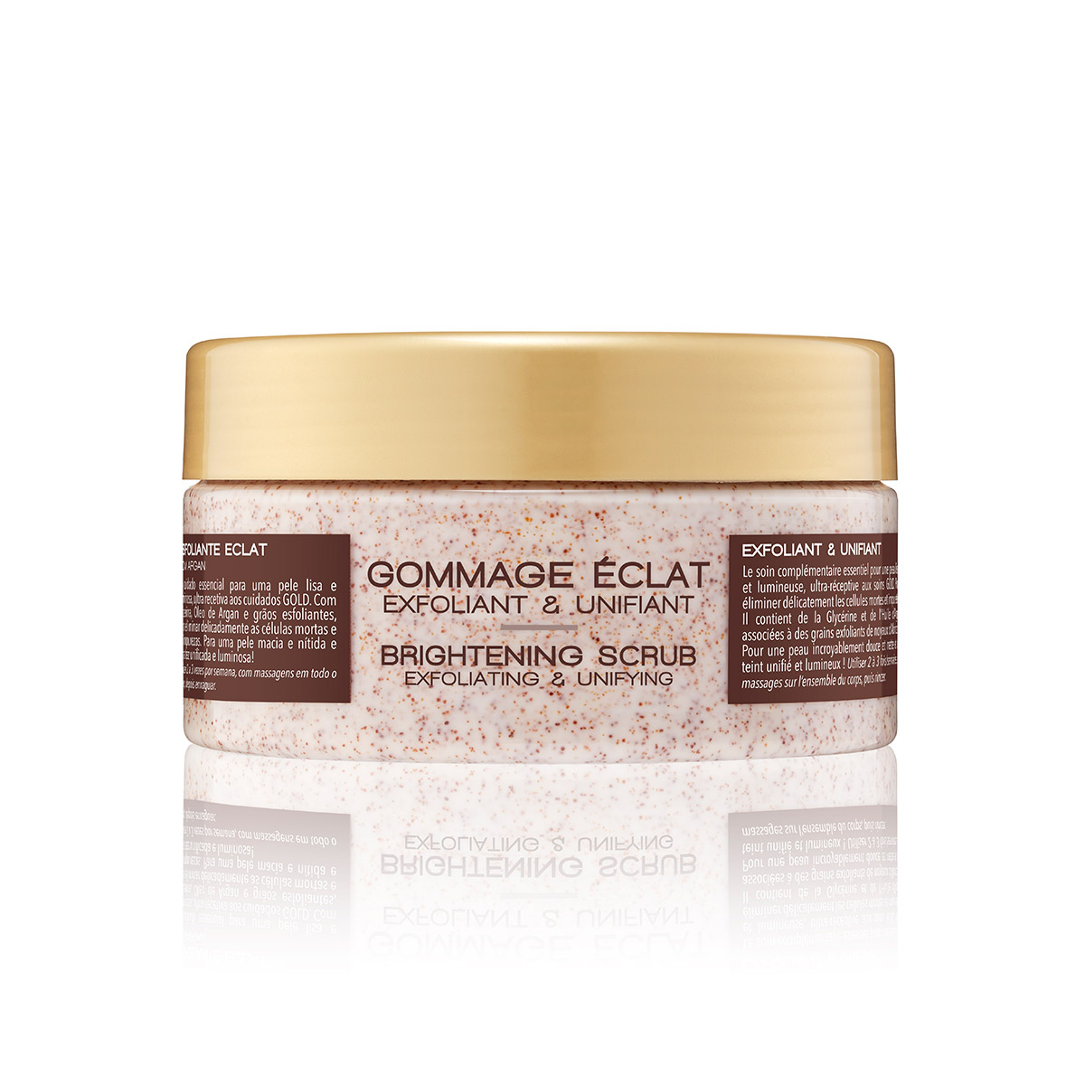 The essential complementary ritual for smooth and radiant skin,ultra-receptive to GOLD care. To gently remove dead cells and impurities. It contains Glycerin and Argan Oil combined with Apricot Kernels exfoliating grains. For incredibly soft, clear skin and a unified, radiant complexion!
