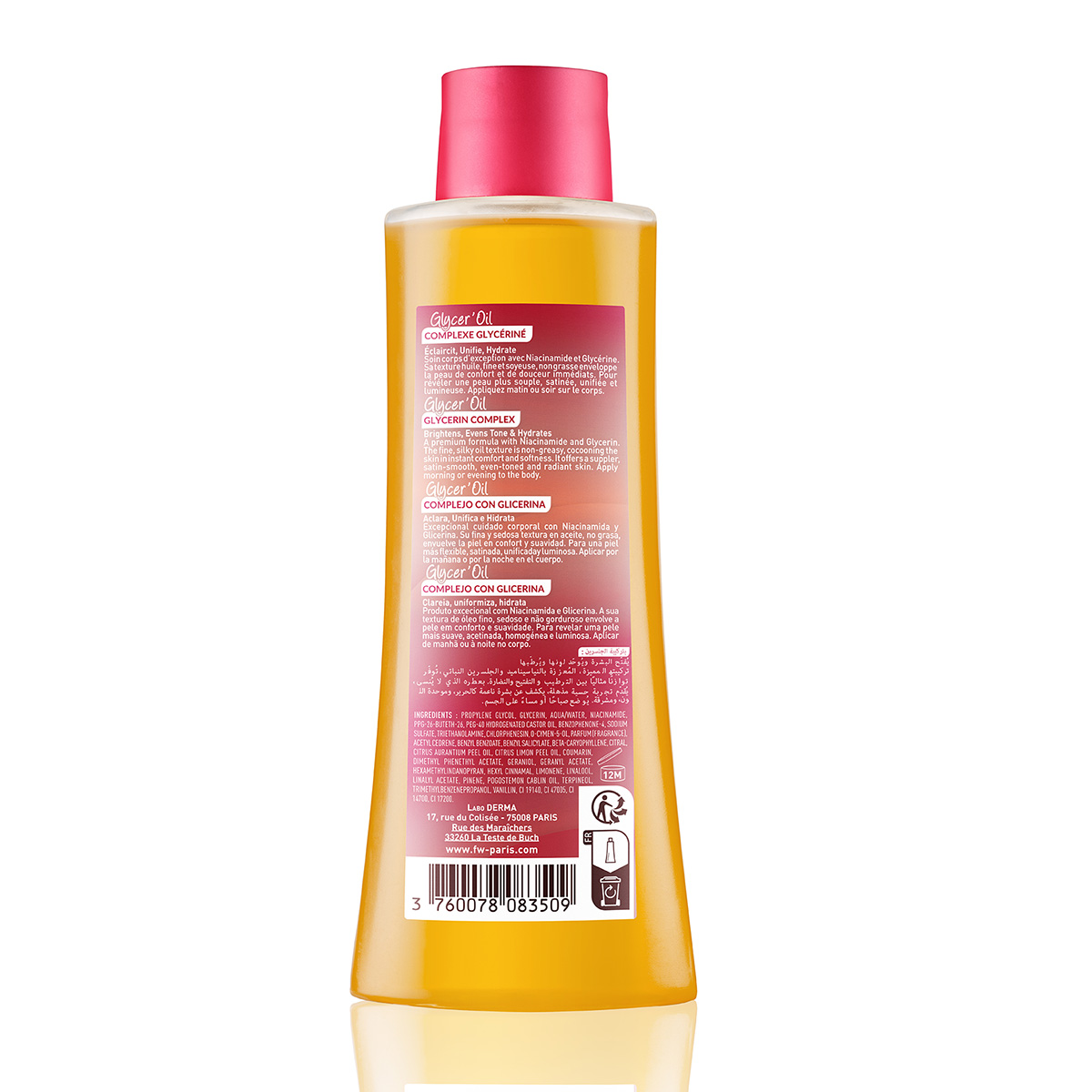 Glow Perfect Glycer’oil is an exceptional body care product. Its premium formula, enriched with Niacinamide and plant-based Glycerin, delivers the perfect balance of hydration, radiance and brightness. The fine, silky oil texture is non-greasy (and non-sticky), cocooning the skin in instant comfort and softness. With its unforgettable fragrance, Glow Perfect Glycer’oil offers a truly incredible sensory experience, revealing suppler, satin-smooth, even-toned and radiant skin.
